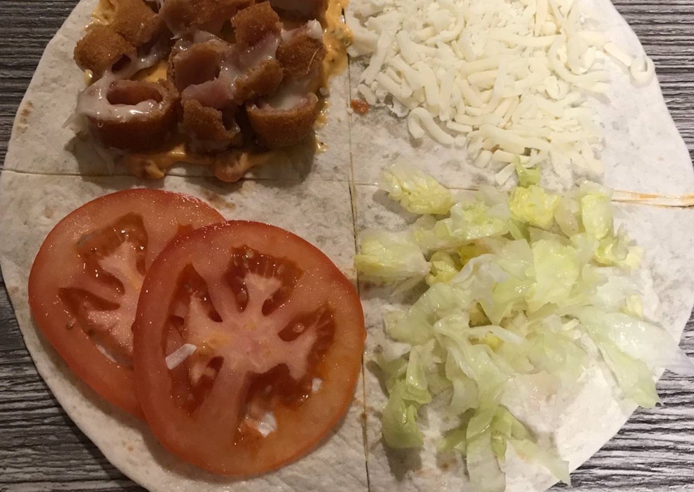 - Pon una buena cantidad de ingredientes en cada parte de la tortita.